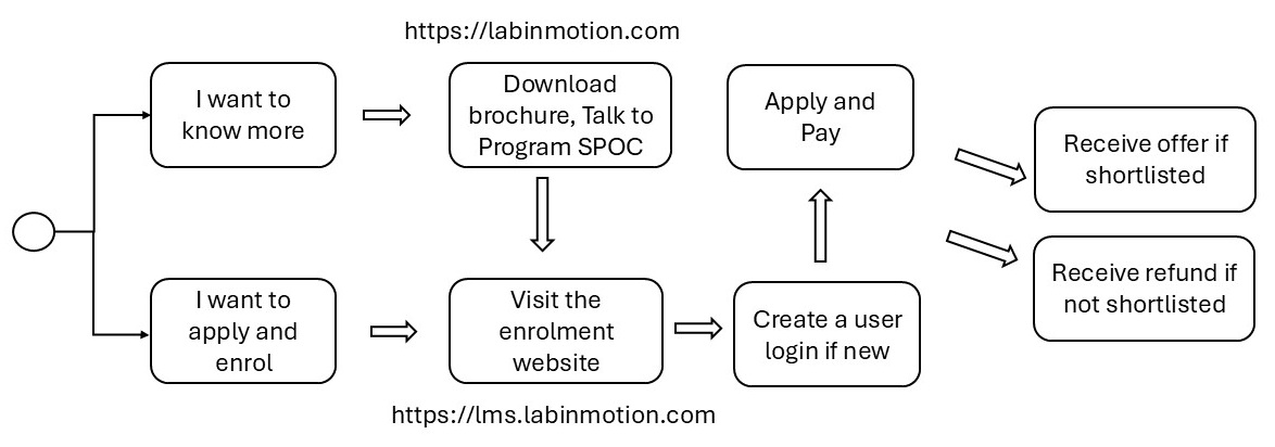 The payment and enrollment happen through our enrollment and learning management website. We offer easy installment plans for all our programs. This can help you plan your cash flows. We offer an additional 5% discount on group registrations for 3 or more people from a single organisation. Please email support@labinmotion.com for group registrations, and we will guide you through the enrollment process.