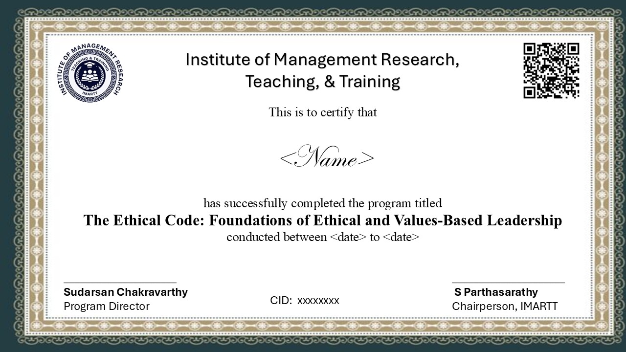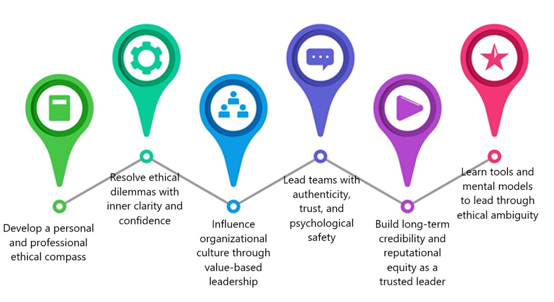This transformative journey redefines ethics—not as mere compliance—but as the very character of leadership. Rooted in timeless wisdom and aligned with contemporary challenges, this program empowers leaders to lead with clarity of values, courage of conviction, and consistency of character.